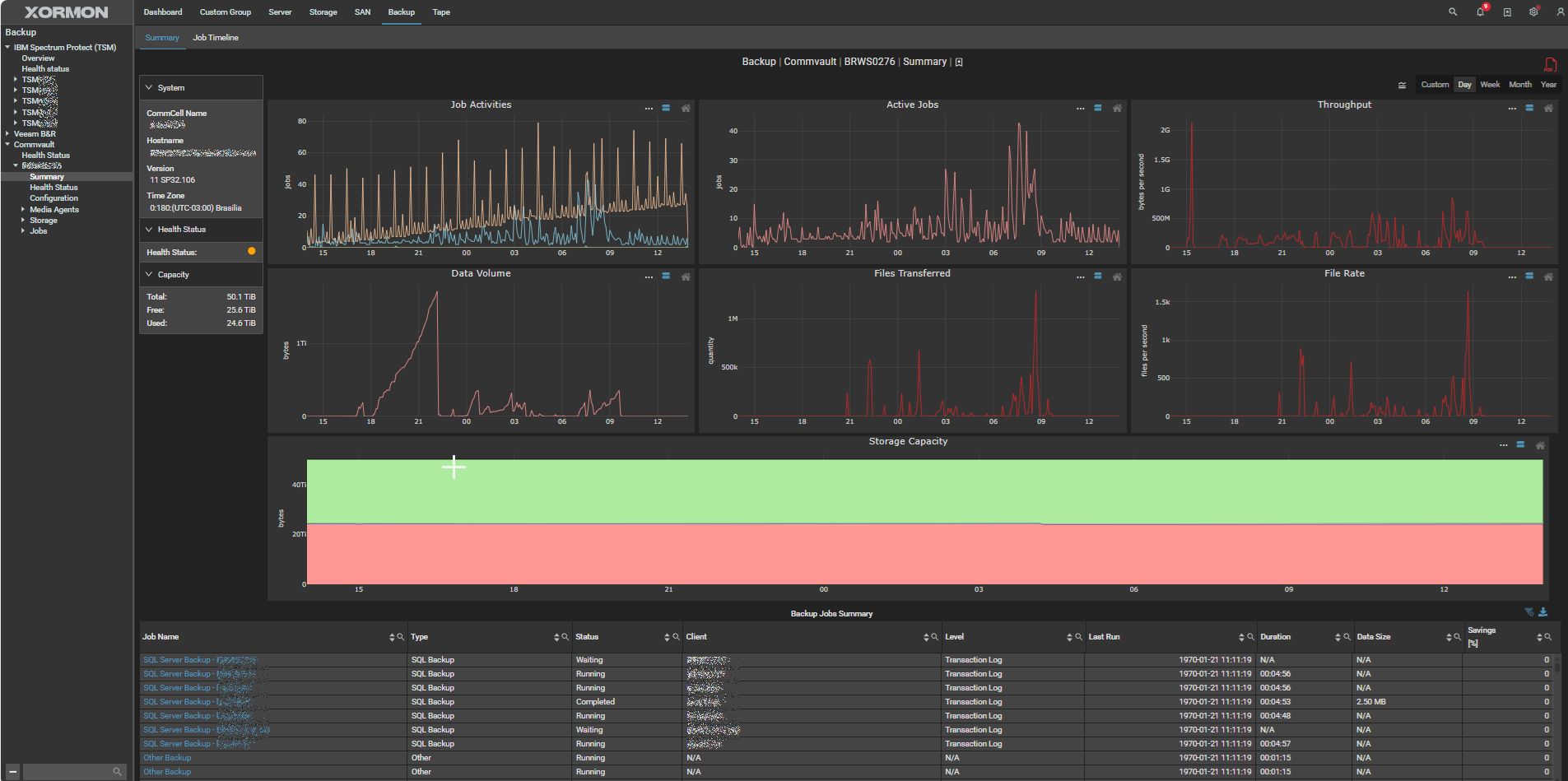 Jobs (active, success, warning, failed, transfered data, avg duration, timeline) |