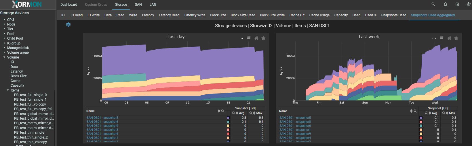 - Volume ➡ Items ➡ volume_name ➡ Snapshots Used a Snapshots Used Aggregated
