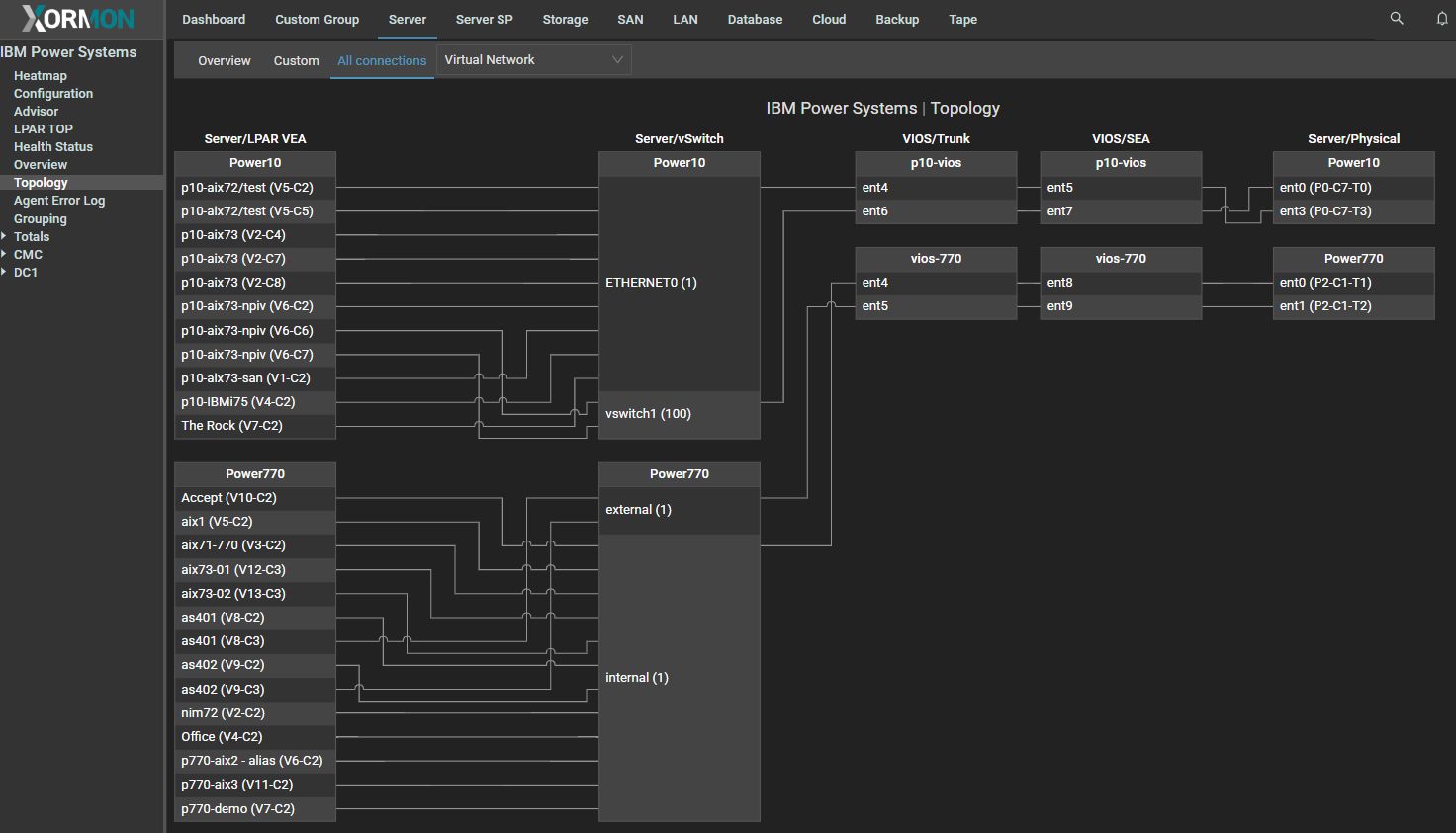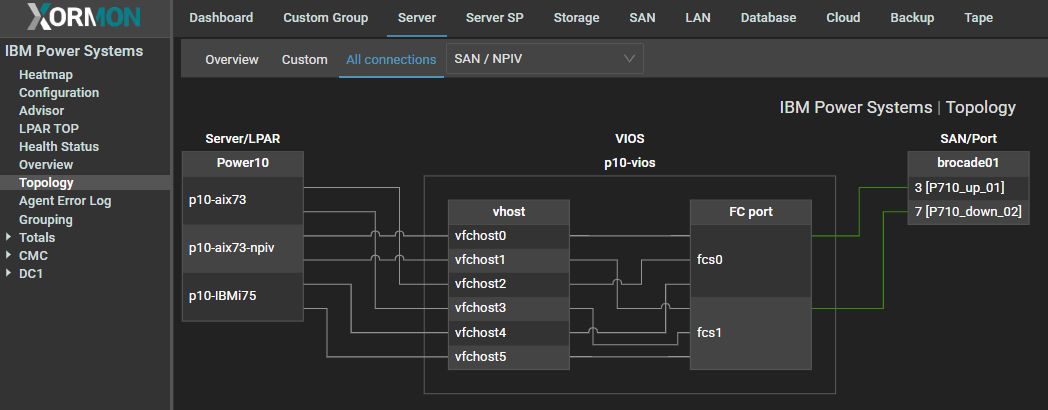 - UI → Server → IBM Power Systems → Topology (SAN, LAN)