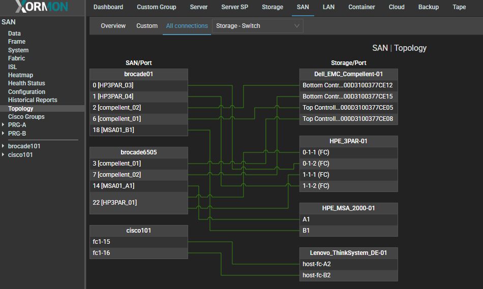 XorMon uses REST API or SNMP or SANnav as the data sources.