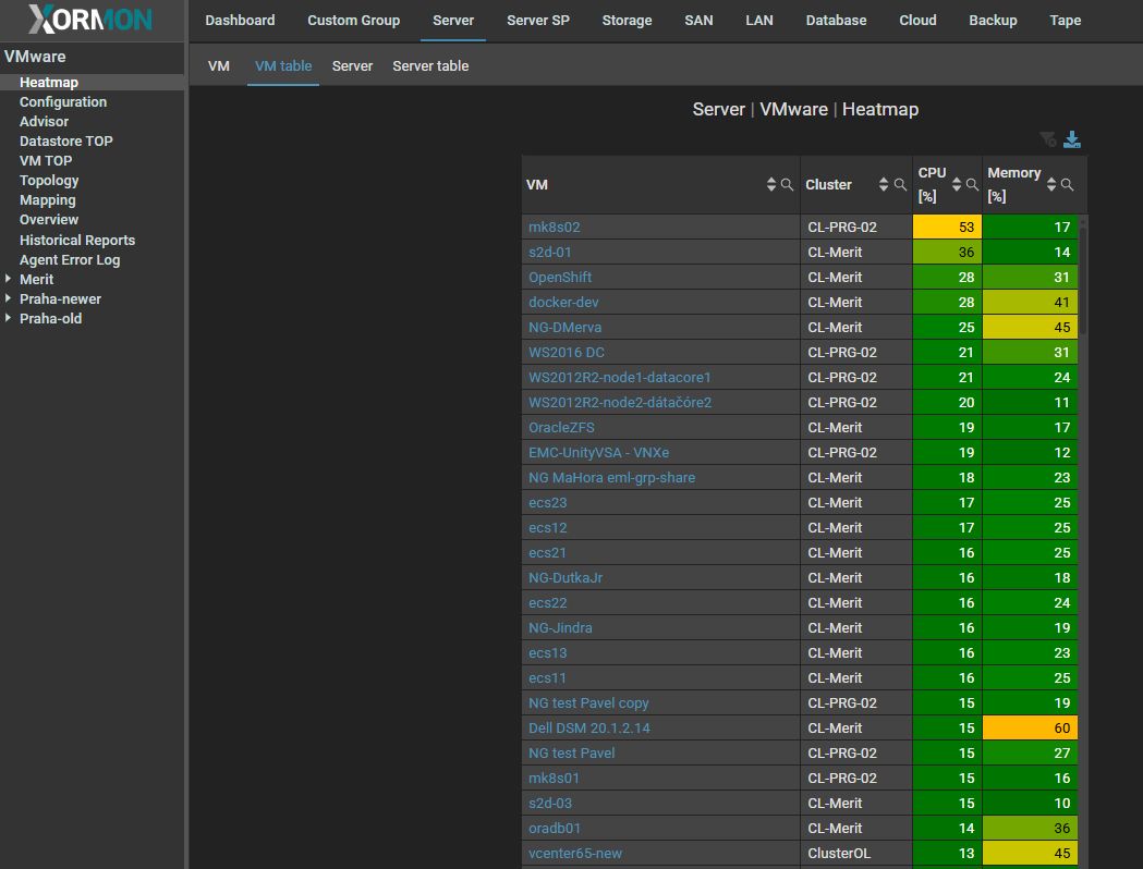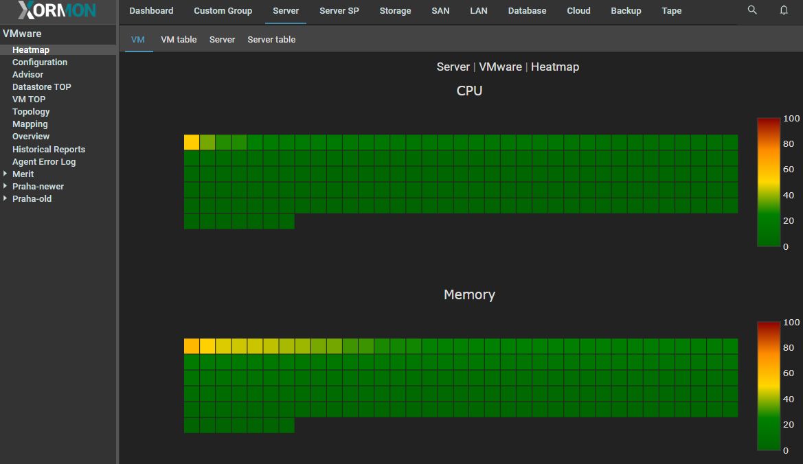 Hetmaps are presented as a single table with color squares and in a separate view in a table.