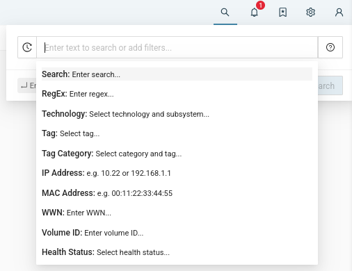 You can search for items using text, regular expression, custom tags and IP addresses.