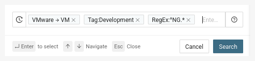 Example: search for all item names starting with "vm": "re:^vm.*"